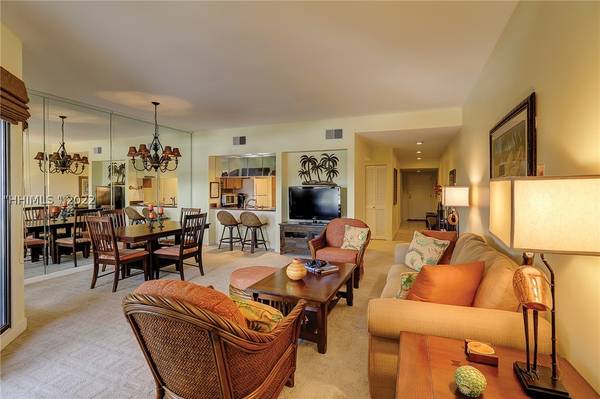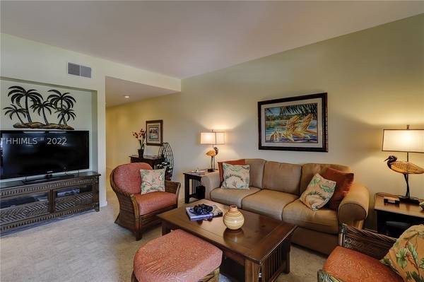 One of the very best views of Shelter Cove Harbour to the marshes and waters of Broad Creek. The sunset views are spectacular from your large secluded balcony. This 1BR/1.5BA 3rd floor villa has just been stylishly remodeled and is offered fully furnished! Shelter Cove is the hottest place to be for walking access to many restaurants, Starbucks, Kroger, boutique shops, nightclubs, entertainment and parks. Palmetto Dunes amenities include 3 award winning golf courses, Tennis, Pickleball, miles of pristine beaches, 11-mile lagoon and on call Transportation. Convenient Breeze Trolley is right outside your door for island wide access.