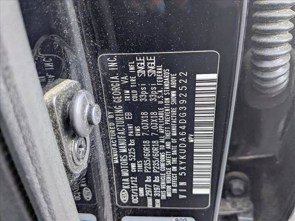 The following items have been reconditioned on this vehicle: all new tires! * Premium Plus Pkg * Leather Seats * Navigation System * 3rd Row Seat * Black Rear Bumper Protector * Keyless Start * Cargo Net * Rear Spoiler * Ipod Cable * Black; Seat Trim * Ebony BlackLooking for a clean, well-cared for 2013 Kia Sorento? This is it. The Kia Sorento is the benchmark all other SUVs strive to meet. With exceptional power, towing and handling, this SUV can handle anything thrown at it. You'll love the feel of AWD in this 2013 Kia Sorento. It provides a perfect balance of handling power and control in virtually every driving condition. The Sorento EX has been lightly driven and there is little to no wear and tear on this vehicle. The care taken on this pre-owned vehicle is reflective of the 96,905mi put on this Kia. More information about the 2013 Kia Sorento: The 2013 Kia Sorento is sized between more compact crossover models like the Honda CR-V and Toyota RAV4 and mid-size models such as the Honda Pilot and Toyota Highlander. The Sorento is a little more maneuverable than the larger vehicles while offering just as much practical space. The Sorento was completely redesigned in 2011 and offers a wealth of passenger and cargo space, while its engine lineup offers both power and fuel efficiency. Kia says that the V6's 276-horsepower output is best-in-class, and fuel economy on the 4-cylinder Sorento is among the best in this category. The Sorento's strong warranty--ten years or 100,000 miles for powertrain and five years or 60,000 miles basic warranty, and five years or 60,000 miles of roadside assistance--also help make this a strong choice for families. Interesting features of this model are available third-row seat, comfortable ride, Just-right size, roomy interior, standard tech features, and utility and cargo-friendliness