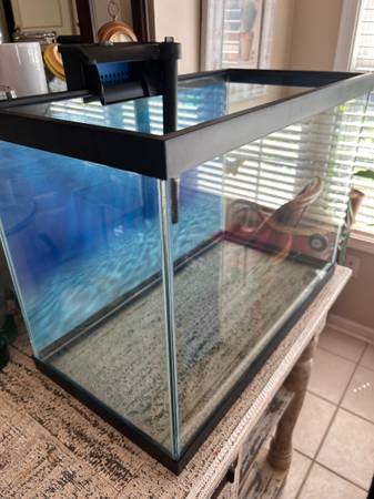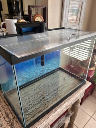 20 GALLON GLASS AQUARIUM WITH FILTER, NEW ACRILIC COVER, NEW BACKGROUND, NEW SIPHON CLEANER. THERMOMETER. NO DAMAGES NO SCRATCHES. CLEAN