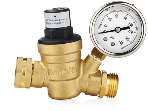 Renator M11-0660R Water Pressure Regulator Valve. Brass Lead-free Adjustable Water Pressure Reducer with Gauge for RV Camper, and Inlet Screened Filter new $35, sell for $15