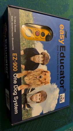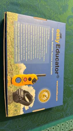 Brand new in the box, but never used. Our dog trainer used a different model. Paid $291 plus extras included. Receipt is in an attached photo and lists the extras (brass comfort pad and bungee quick-connect collar).