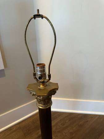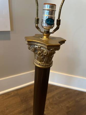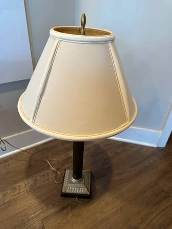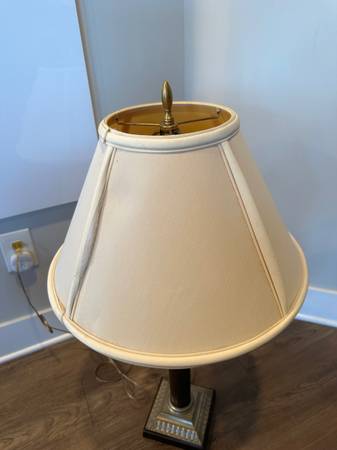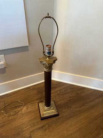 Restoration hardware ornate lamp. Measures 33 inches tall by 18 inches wide. Works great. The lampshade has a couple blemishes. New was over $200. Lightbulb not included. Comes from a smoke free...