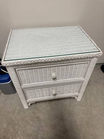 White Wicker End Table