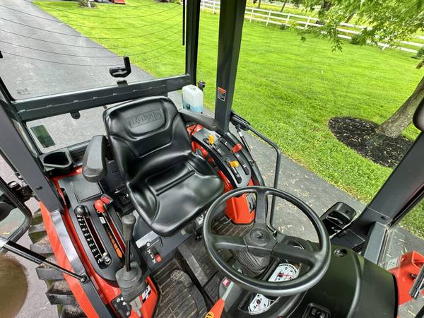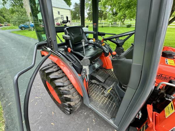 Here is a clean 2011 Kubota B3000 with about 539 hours. Has a 30 hp diesel and no emissions system. Three-range hydrostatic transmission, 4x4, and rear diff lock. Power steering with a tilt wheel. Comes with mid and rear PTO. Tires are R-4 industrial. Factory cab has heat, A/C, wipers front and rear, a rear defroster, mirrors, and work lights.
