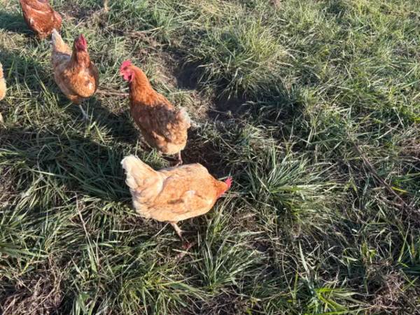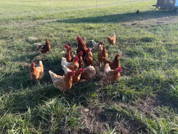 Flock of Red sexlink / Rodh Island Red Hens and one rooster (if you want him) - All fed organic certified feed - Grass fed - Free ranged - Around 9 to 11 months - 15 available - Laying eggs steadily...