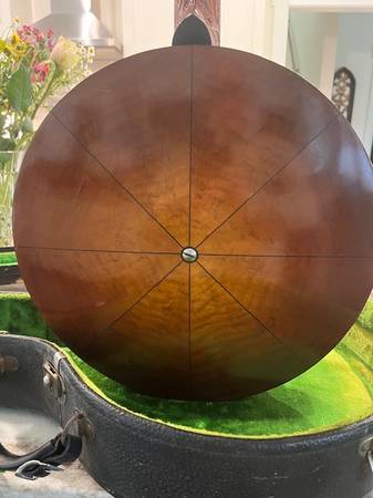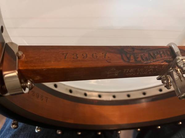 Banjo is in very good to excellent condition with very few signs of use. Going by the serial number, this banjo's production date is somewhere between 1920-1930. Take a look at the ornate carving on the neck--this is very rare and I've never seen one like it. It is in remarkable condition for its age and the craftsmanship is impressive. It's kind of like going back in a time machine when you play this thing. It sounds amazing. The pictures don't do it justice.