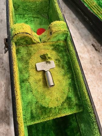 Original Vega case is in fair to rough condition with heavy signs of age and wear, with some degradation of the leather exterior but all buckles are intact and functional--however interior of case is in good condition with no tears. Also included is the original Vega banjo key--which is essential, as well as an assortment of new strings.