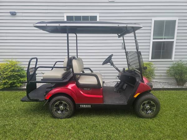 As-new gasoline powered Yamaha Personal Transport Vehicle (DR2 PTV Quietech), in Jasper red. This was purchased new from a Yamaha dealer two years ago. At the time, the dealer was selling well-used golf course carts for 10k. This cart has less than 24 hours of operating time on it, and the oil has been changed twice. It has two years remaining on the Yamaha warranty. It has been stored under a cover on pavers since purchased. I think we’ve run two tanks of gas through it, and I’ve always used ethanol-free gas.