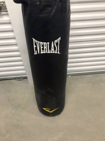 Nice 80 pound Everlast boxing bag in good condition. Its 48" tall and 13" across. Filled with synthetic and natural fiber not water/air. Sells new for $120-$140.