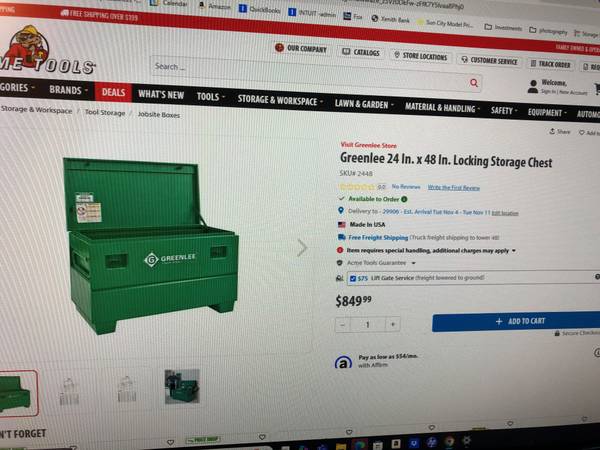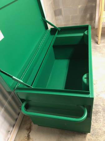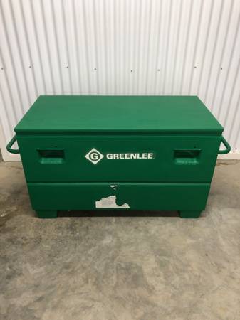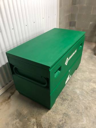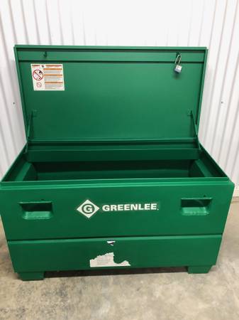 BRAND NEW, HEAVY DUTY Greenlee 24"X 48" Locking Storage Chest. Perfect for secure jobsite storage or will fit on truck for travel to different jobsites. This item is in brand new condition. Powder coated finish with concealed lock protectors.